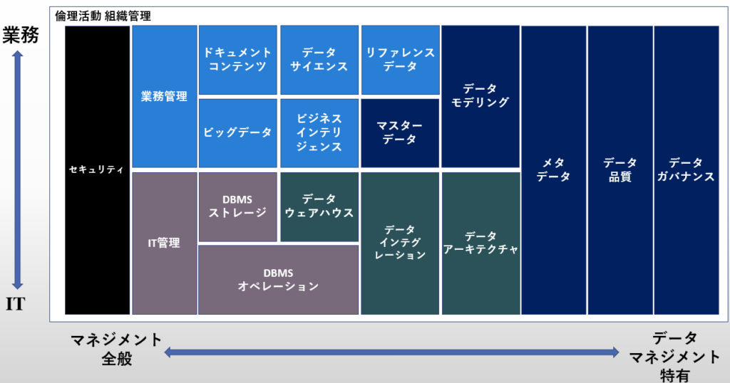 - セキュリティは、データマネジメントというより、業務とITにまたがった全体に関わるものなので、一番左に…