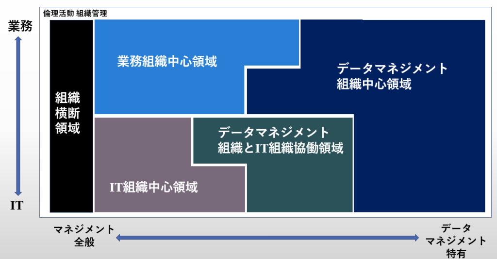 - データマネジメント組織が直接関わるべき領域と、他組織が中心となる領域を区別する
